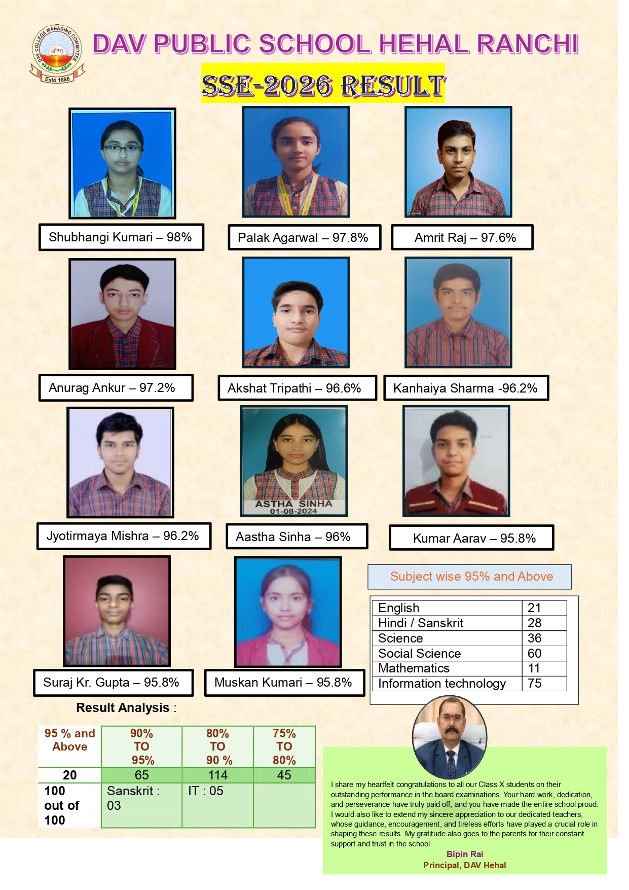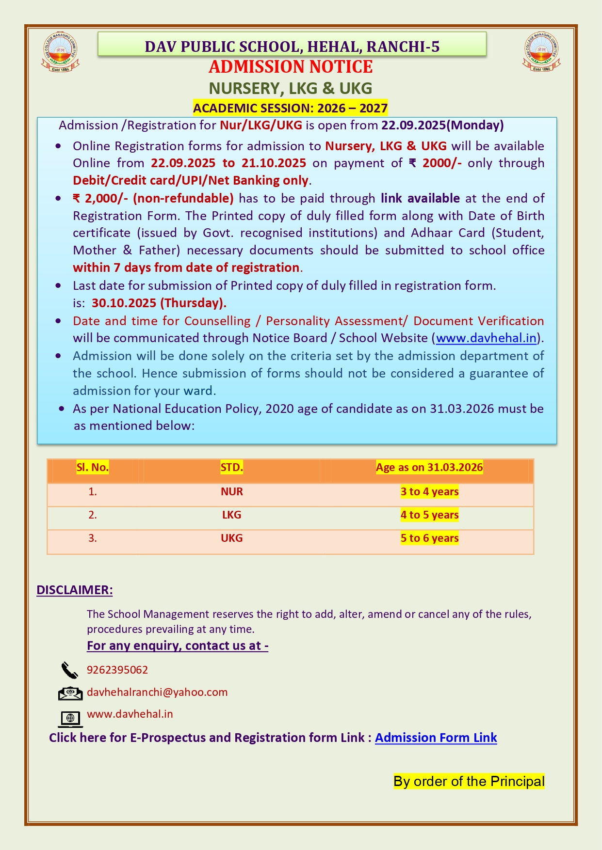 Education is not filling of a pail, but the lighting of a fire. It’s about nurturing young minds & grooming them to become the responsible citizens.DAV Public School, Hehal, Ranchi firmly believes in igniting the flames of curiosity and fostering a life long passion for learning. The institution is dedicated to the overall grooming of the learners, to help them become well-rounded individuals with a strong sense of ethics and morality....